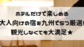 森に囲まれた隠れ家的ホテルや、オーシャンビューの客室でゆったり過ごせるラグジュアリーホテル、温泉やアクティビティが豊富なリゾート型ホテル、そして都市の中で静かにこもれる高層階ホテルなどそれぞれ異なる魅力があるのもポイント。